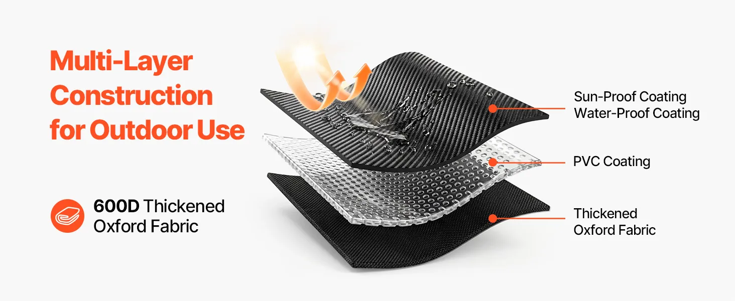 Outdoor Fabric Design: This club car cover uses 600D high-density polyester fabric combined with a PVC coating for outdoor driving conditions. The construction is suited for rain, dust, and sun exposure, supporting consistent coverage while maintaining comfort and usability during daily outdoor operation