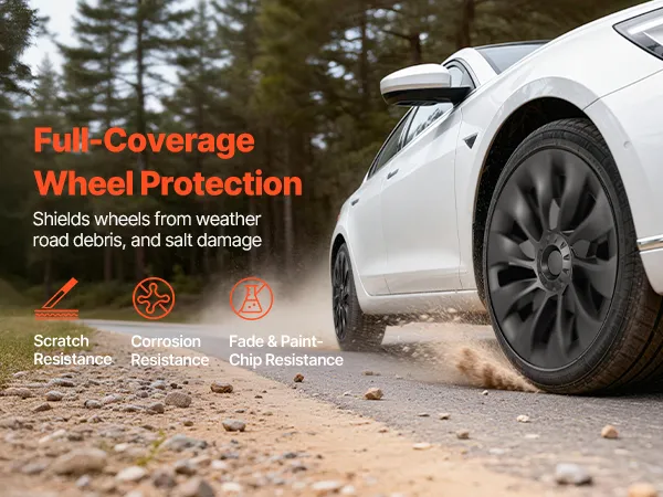 Our hubcap features a full-cover structure that wraps the steel wheels, reducing contact with road debris while concealing minor scratches, keeping the wheels in good condition.