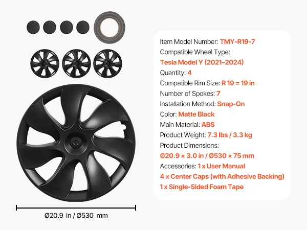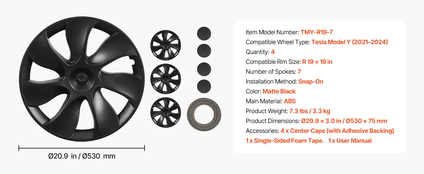 Tesla Model Y Specific: The hubcap wheel cover is designed for the 19-inch wheels of the 2021-2024 Tesla Model Y, including separate left and right side wheel covers. It is not compatible with other models or wheel sizes