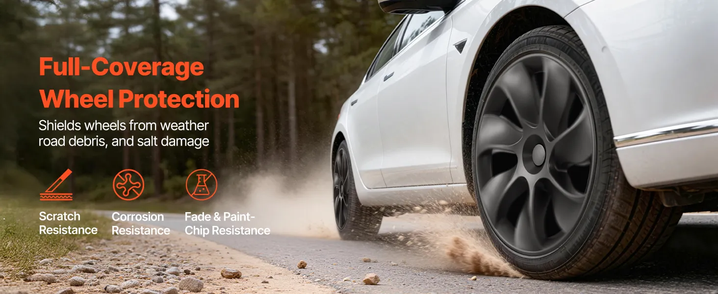 Our hubcap features a full-cover structure that wraps the steel wheels, reducing contact with road debris while concealing minor scratches, keeping the wheels in good condition.
