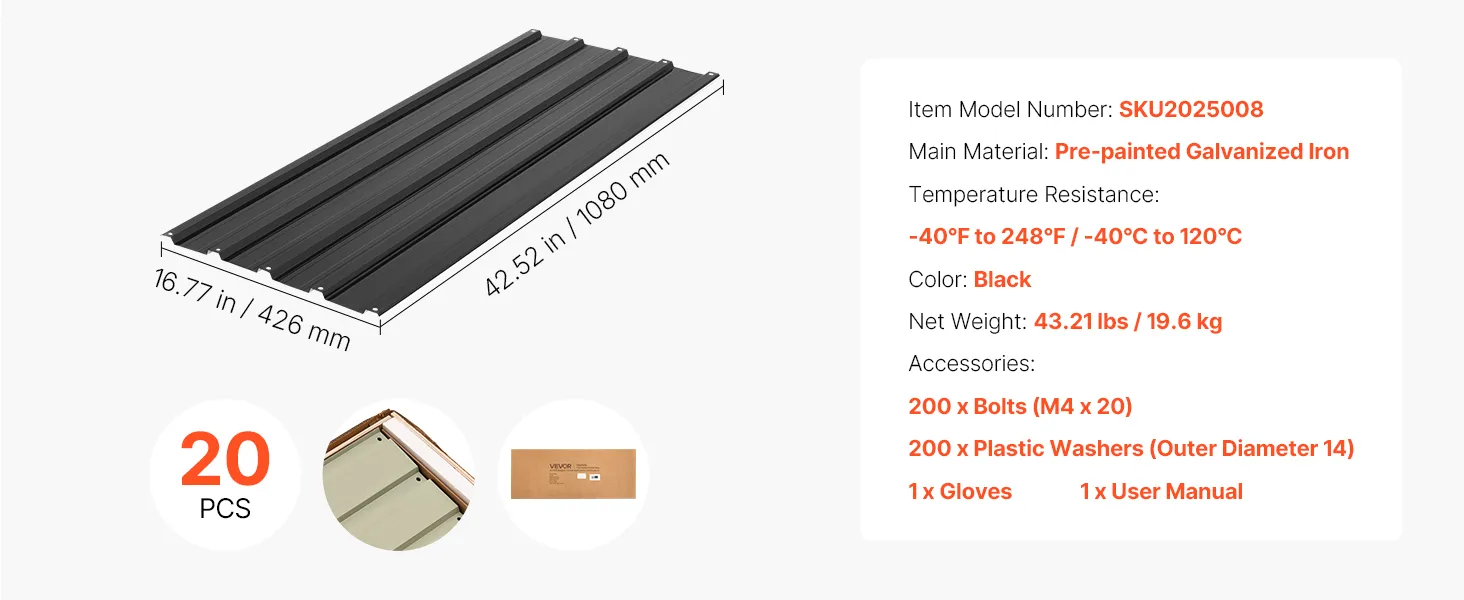 Easy Installation: These roof panels come with screws, washers, gloves, and clear instructions, allowing for a straightforward setup in just a few steps