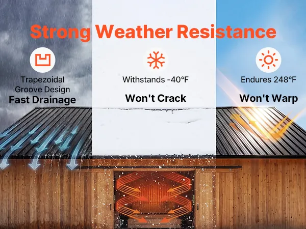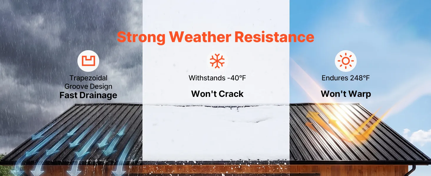 Designed as reliable roof panels, they work from -40℉ to 248℉ without warping or cracking. Grooves help drain rain and snow efficiently.