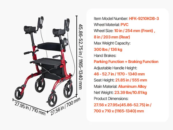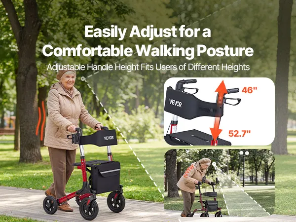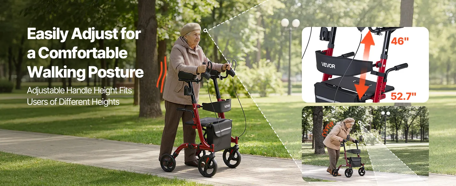 Adjustable handle height allows users to easily find a comfortable walking posture, providing better support and a more natural walking experience.