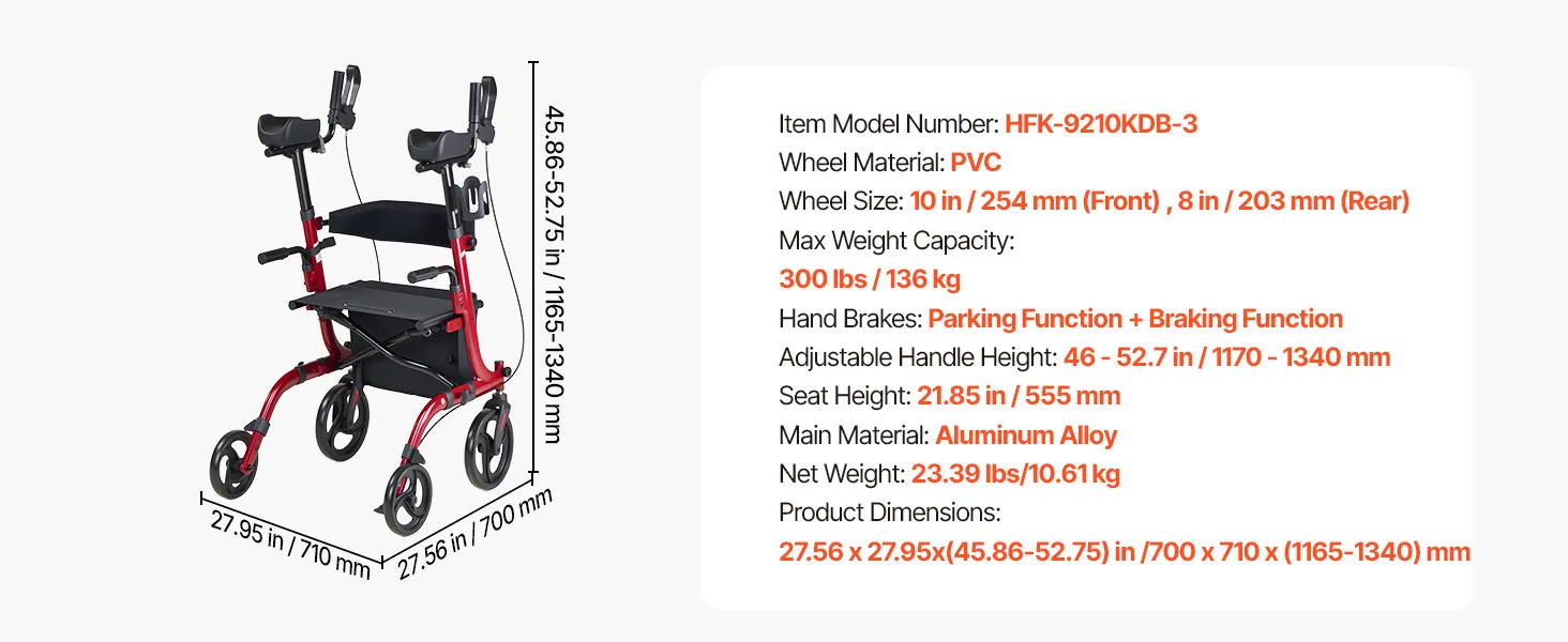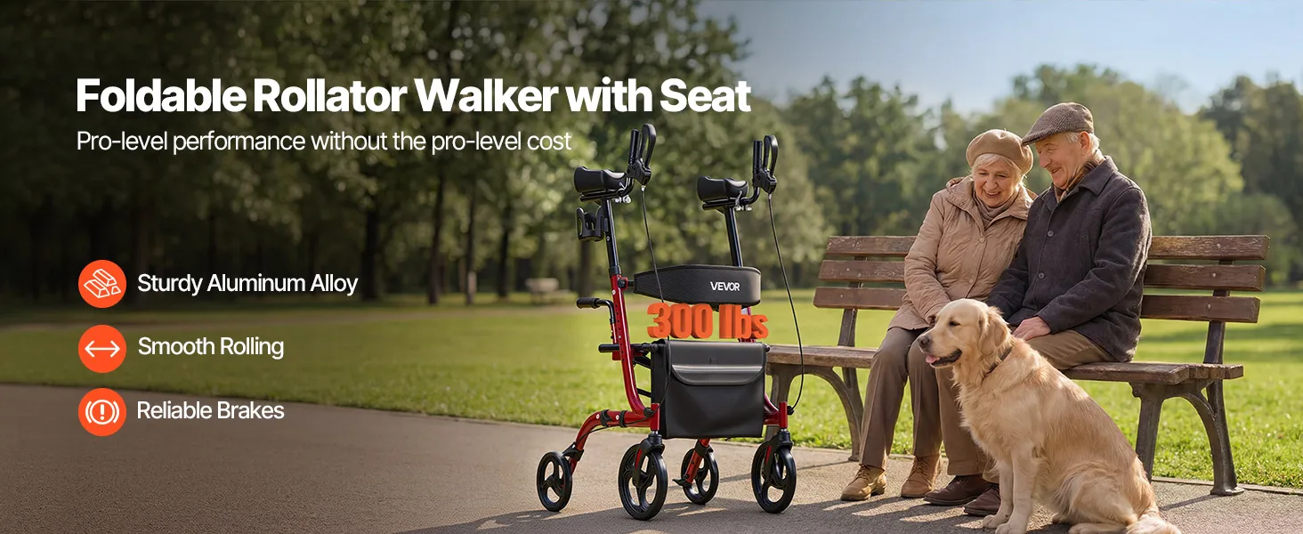 Combining 300LBS strong support, smooth movement, compact folding, and convenient portability, this rollator walker with seat is designed to make everyday mobility safer, easier, and more comfortable for those with limited mobility.