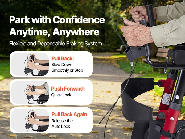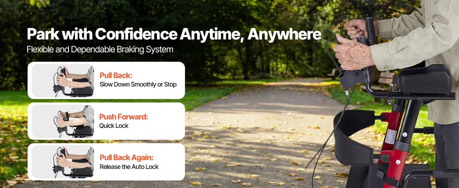 Park with Confidence: Featuring a 3-in-1 braking system with free rolling, slow-down braking, and quick stoping functions, this outdoor mobility walking aid provides better control and stability on slopes or in crowded areas for a safer mobility experience