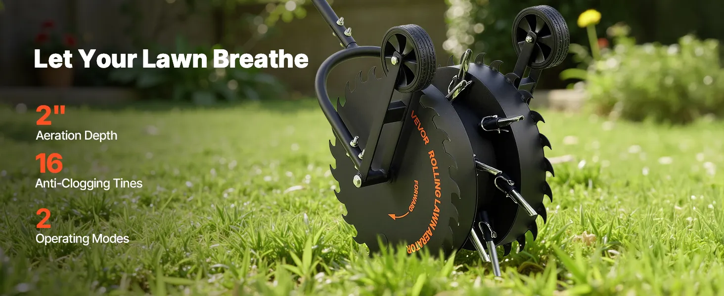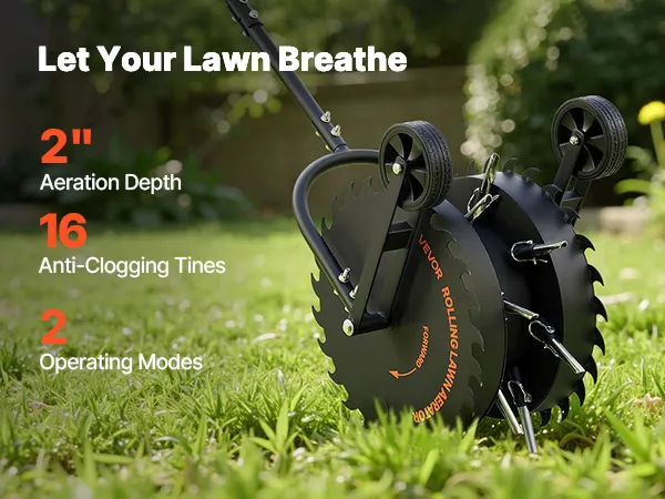 Equipped with 16 anti-clog coring tines and a 3-inch core depth, this lawn core aerator delivers air, water, and nutrients directly to the root zone. Two operating modes adapt to different yard conditions, helping your lawn recover faster with thicker, healthier growth.