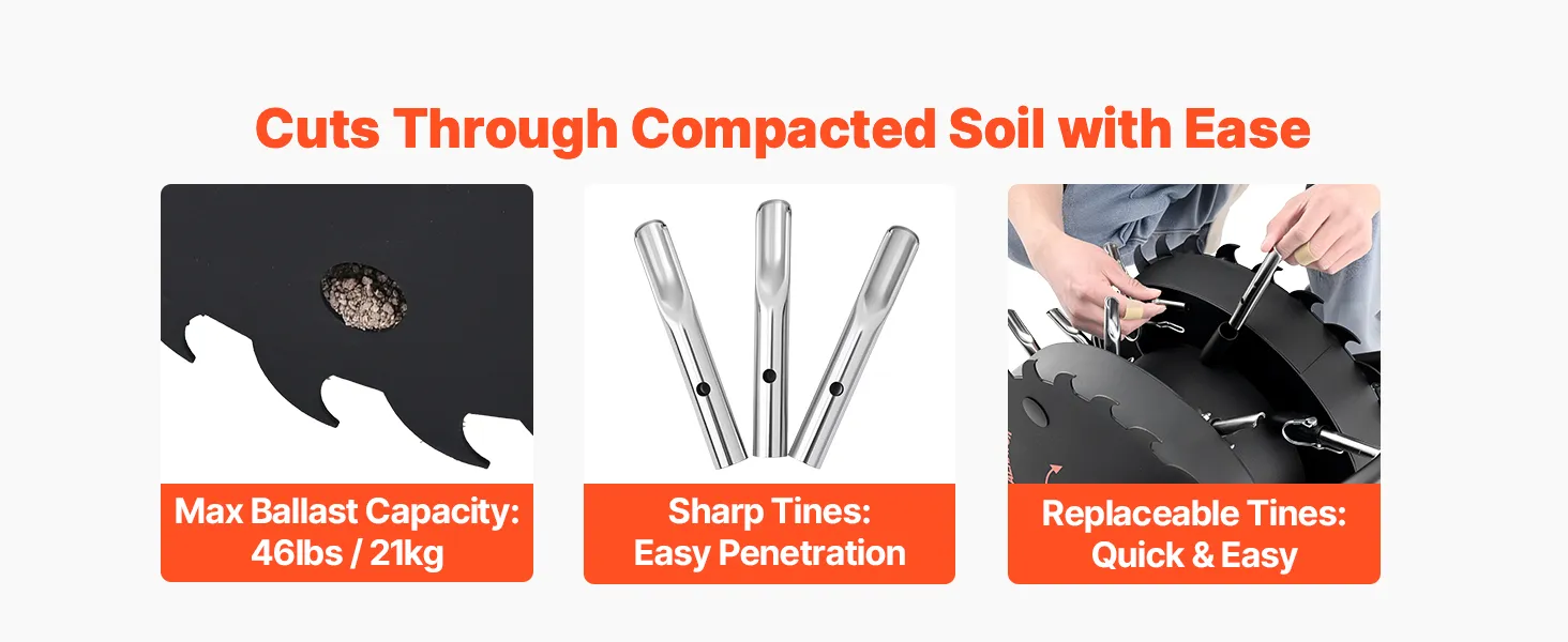 Lower the wheels to move the unit like a cart—no heavy dragging required. Raise the wheels to let the drum fully contact the ground for maximum penetration. Switch effortlessly between soft soil, hard soil, or mixed conditions to boost productivity.