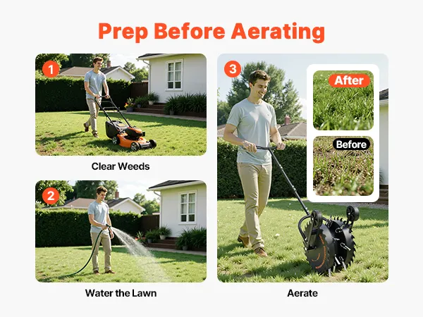 For optimal performance, remove weeds and lightly water the lawn beforehand to keep the soil slightly moist. This allows the aerator to loosen soil more easily and deliver air and nutrients deeper into the root system.