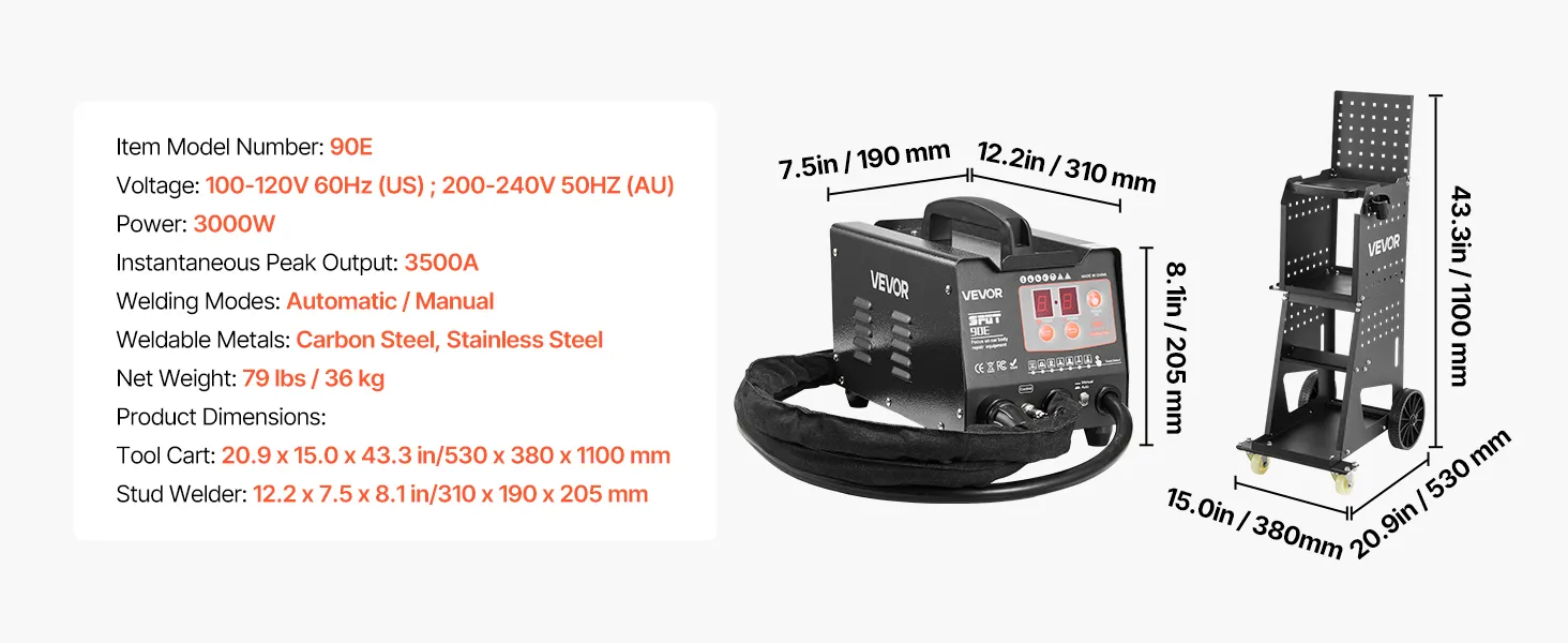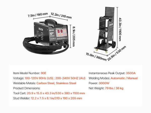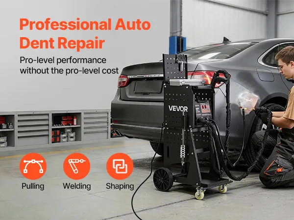 Featuring 7 functional modes, 3500A instantaneous peak output, auto/manual welding modes, and dual welding guns, VEVOR stud welder dent puller is built for professional and efficient auto body work. Loaded on a smooth-rolling cart, it offers easy mobility for an efficient repair process.