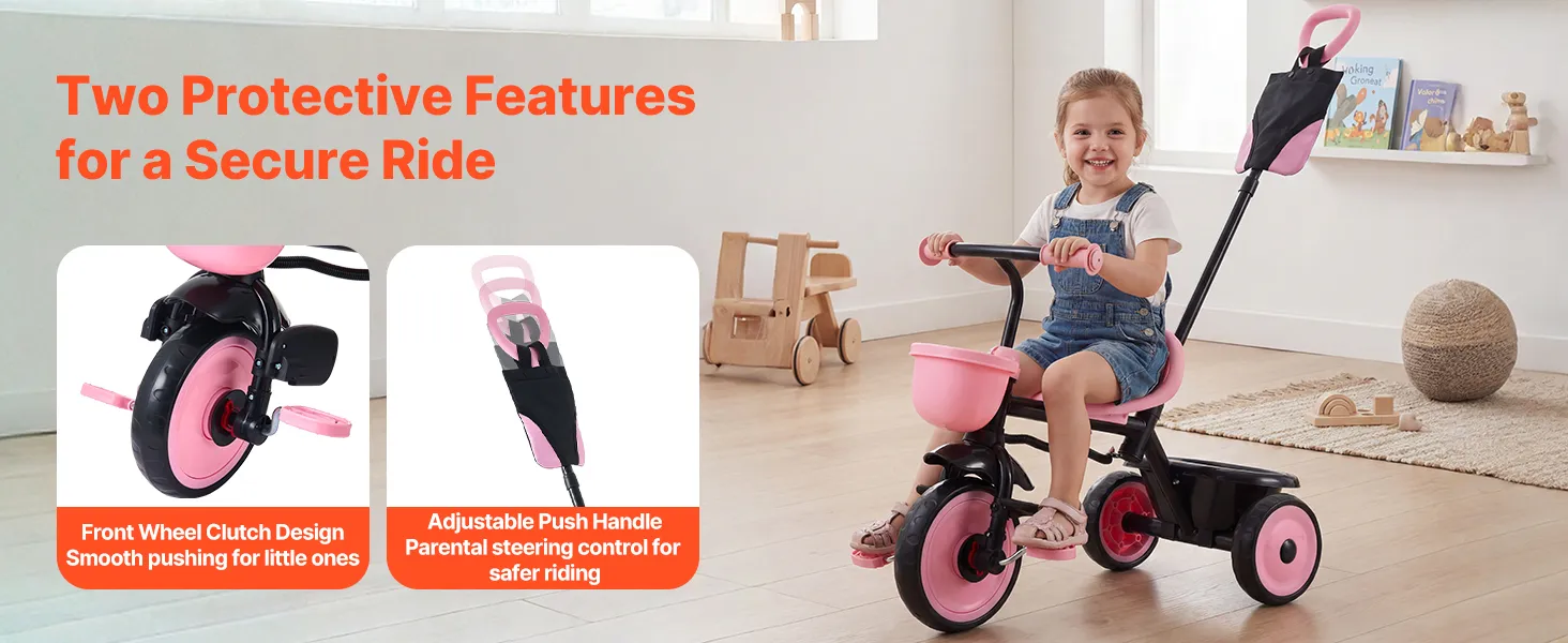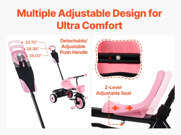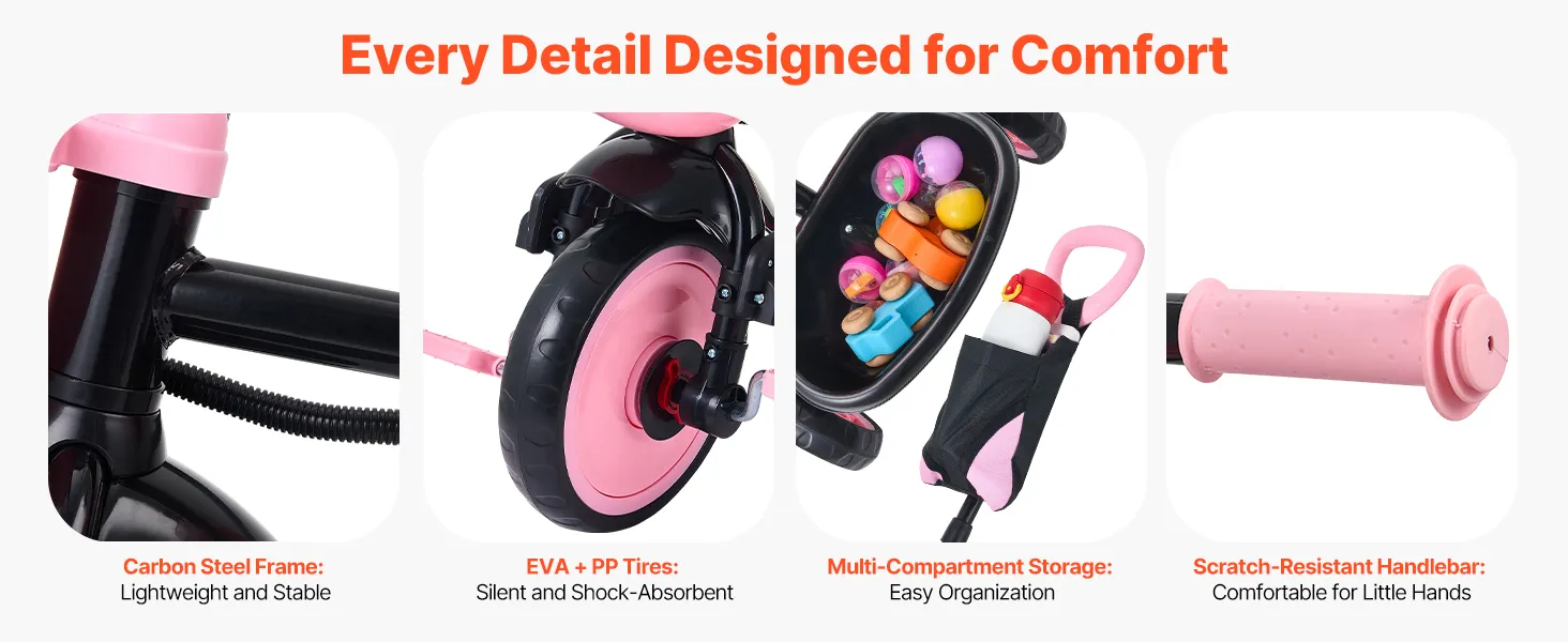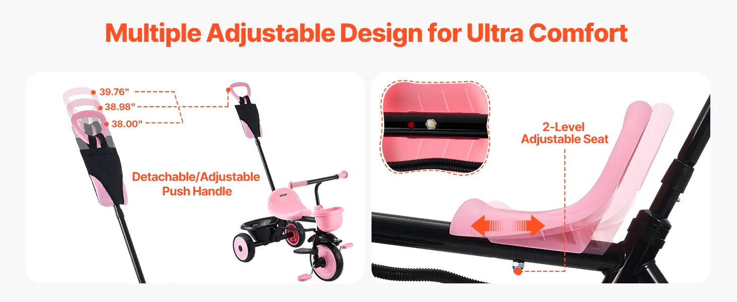 Parent-friendly Design: Adjustable push handle height fits different users of this tricycle for toddlers. Thoughtful features like multi-zone storage keep outings more organized and effortless