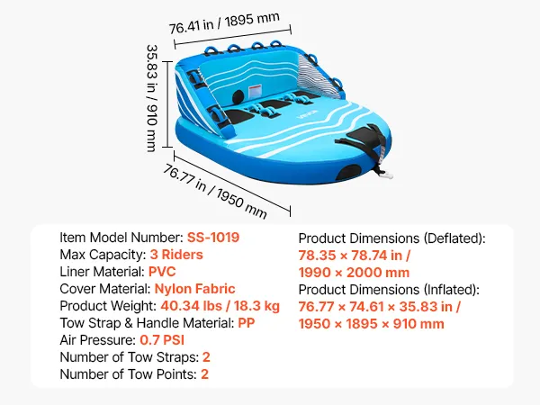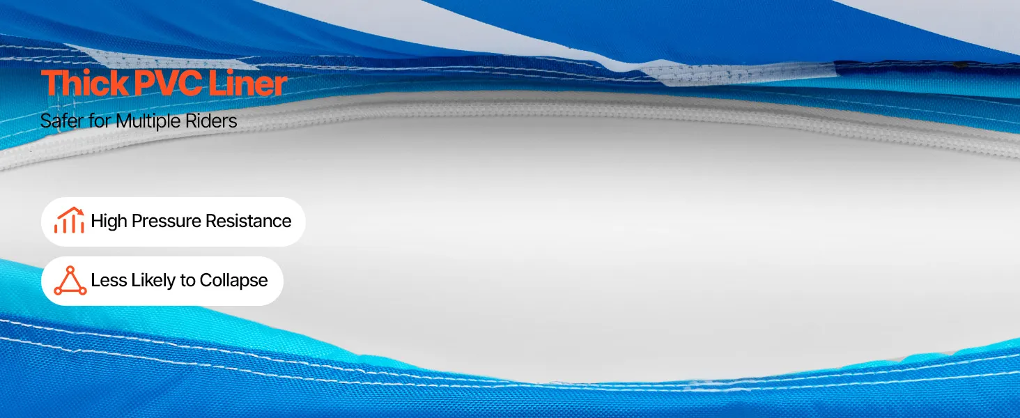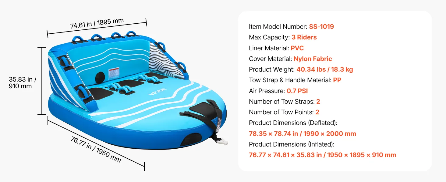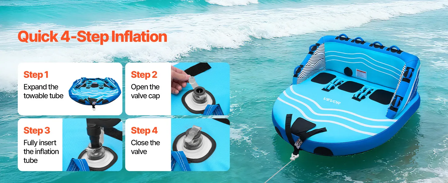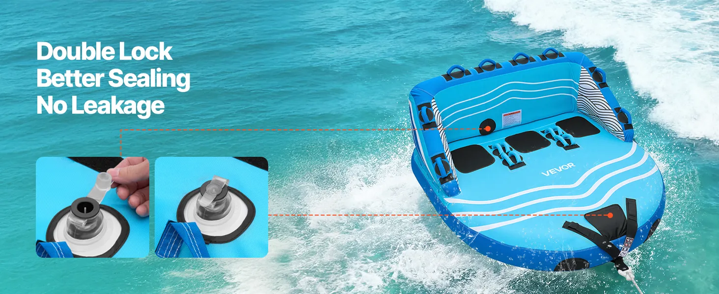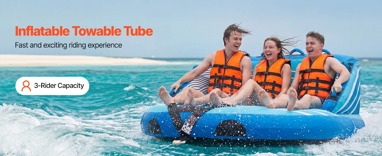 Thrilling Water Riding: VEVOR D-shaped towable tube for boating features a high backrest and thick sidewalls to help reduce the risk of falling. Spacious enough for three riders, it supports a maximum weight capacity of 510 lbs (231 kg) for a comfortable ride