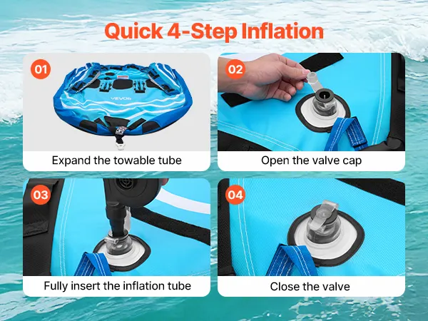 Quick Inflation & Deflation: Featuring a secure air valve for airtight sealing and leak resistance, this towable tube inflates and deflates easily. When not in use, just deflate it for compact storage and convenient transport (Inflation pump not included)