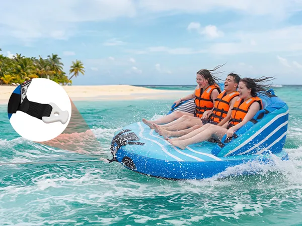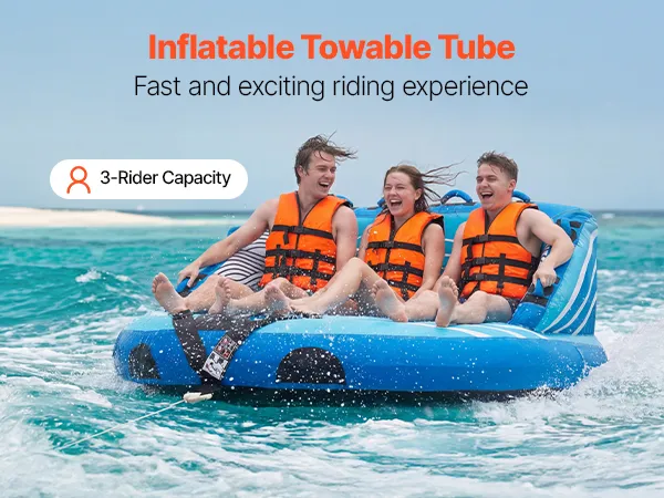 Experience thrilling water riding with our 3-rider towable tube for boating, featuring a thick PVC liner and a full nylon cover, quick inflation/deflation, and padded grip handles. Built for both fun and reliability, it lets you enjoy your water activities with more confidence.