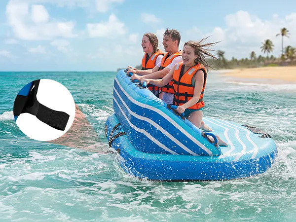 Enhanced Comfort & Stability: Our 3-person boating towable tube features 16 padded grip handles for a more comfortable and secure hold, along with 2 boarding straps to help riders climb back on quickly after falling into the water