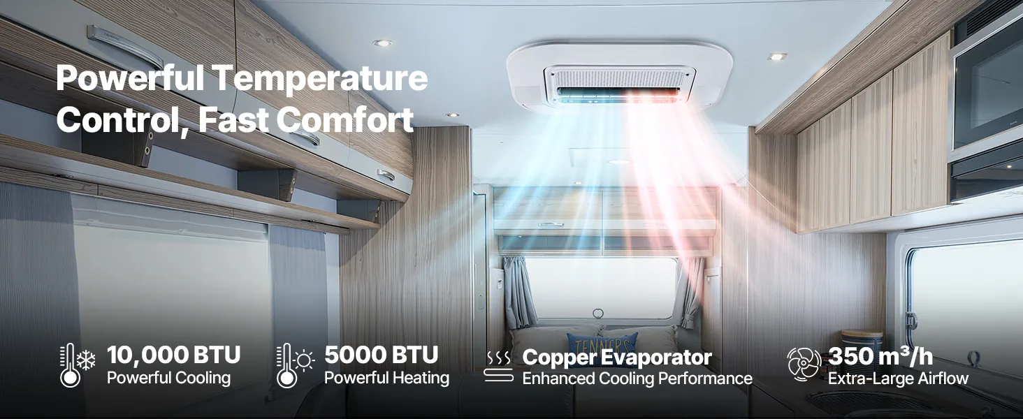 Dual Cooling & Heating: This truck air conditioner delivers 10,000 BTU of dual cooling and heating performance. It quickly cools the cab in summer and warms it up in winter. Enjoy comfortable parking conditions all year round