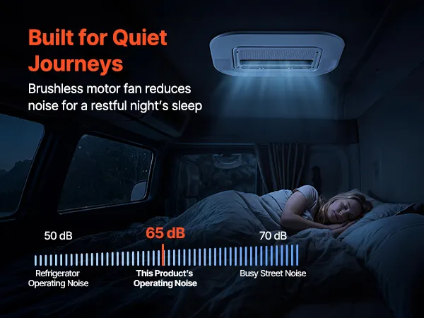 Quiet Performance: The truck cab air conditioner operates at noise levels as low as 65 dB. It allows undisturbed rest during overnight parking and won't disturb nearby drivers. Enjoy a full night's sleep after long hauls