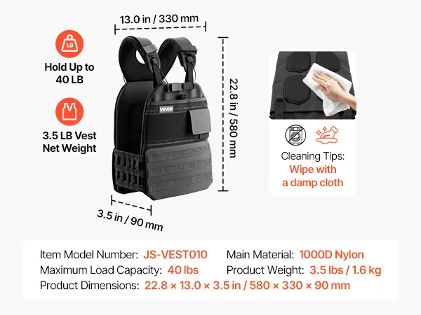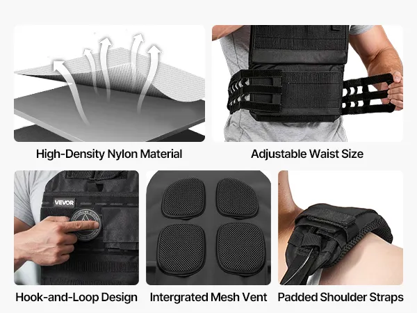 Built with tough 1000D nylon fabric that resists wear and tearing, helping the vest stay durable through intense workouts.
