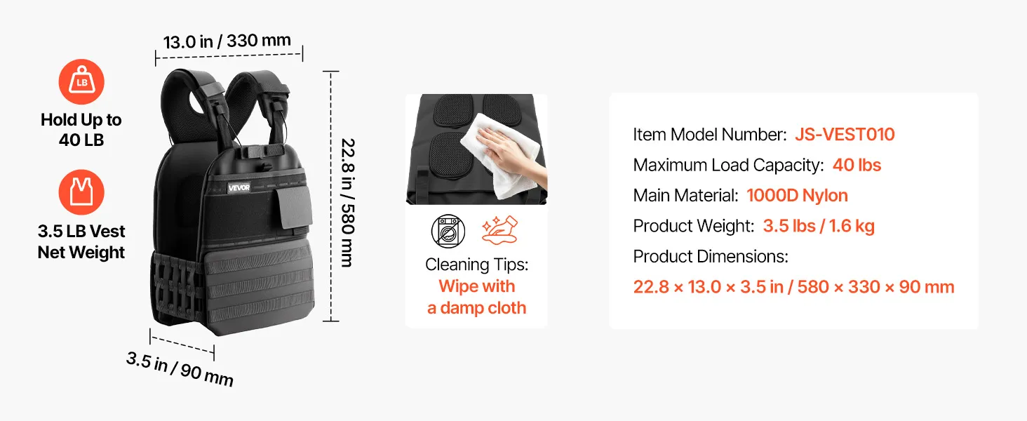 Weight Plates Not Included: This adjustable weight vest weighs 3.5 lbs and can hold up to 40 lbs with two plates (sold separately), giving you the flexibility to tailor workout intensity to your needs