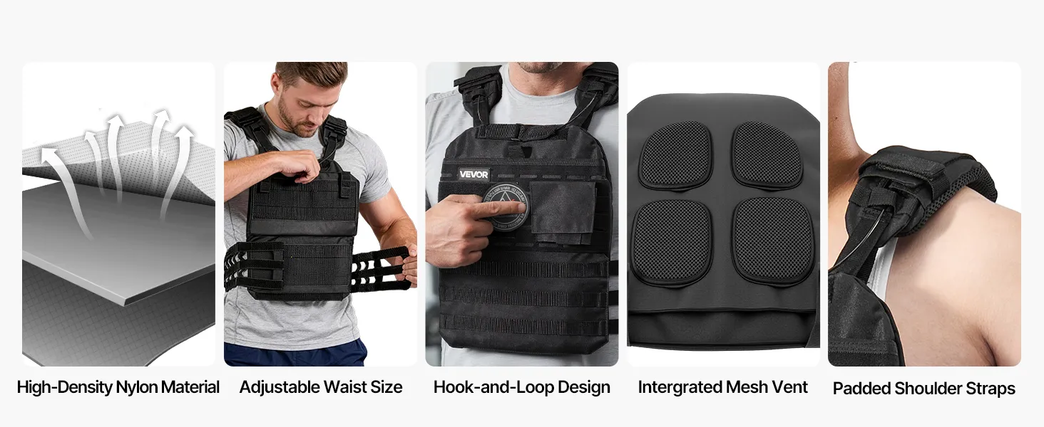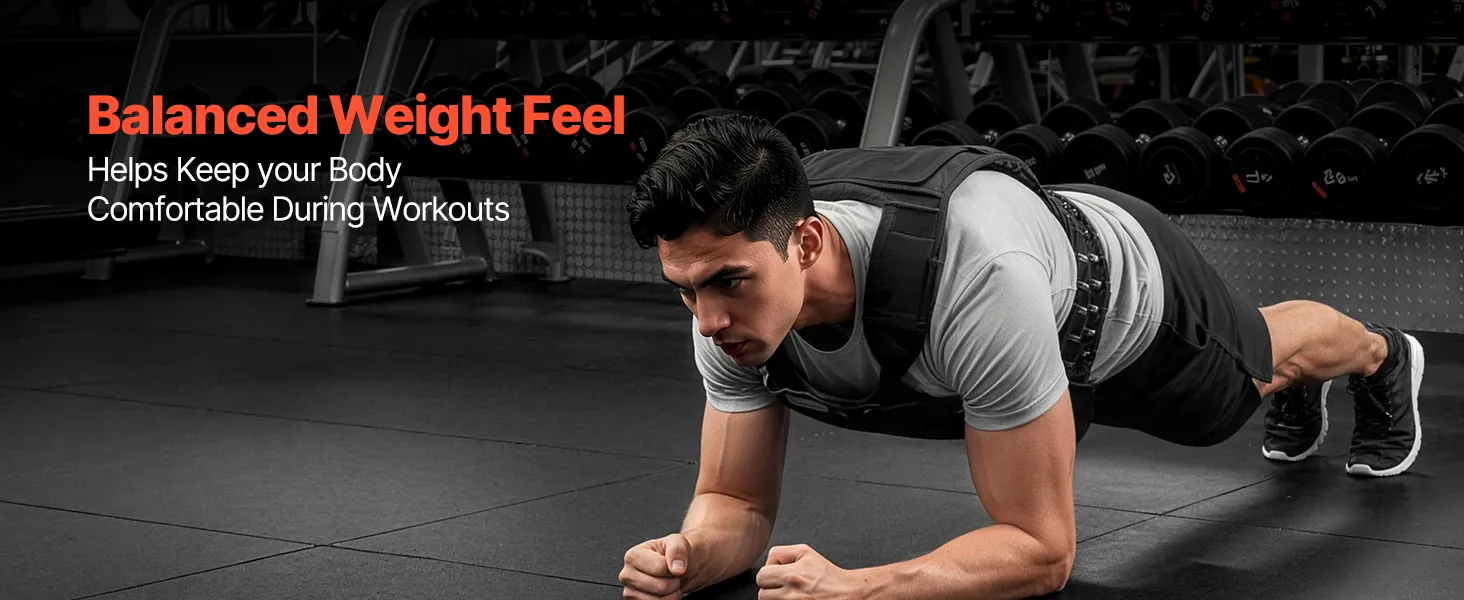 Evenly-Distributed Weights: Featuring adjustable straps for a secure fit on different body types and padded shoulders to reduce strain. The balanced weight distribution improves stability and overall comfort during workouts