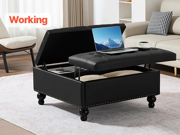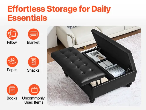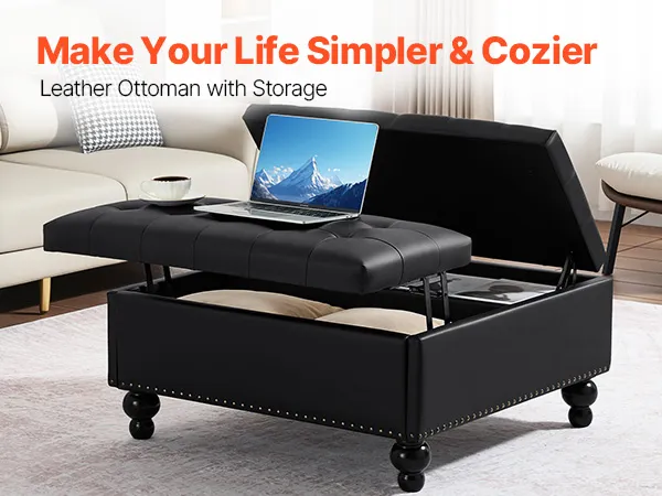 Effortless Open, Instant Reach: With a lift-up lid that stays in place, you can reach inside without juggling anything on top. Our leather storage ottoman is designed to make everyday storage feel simple, especially when you're multitasking at home