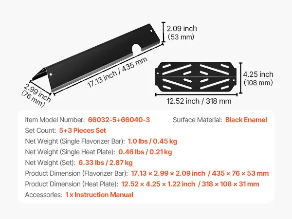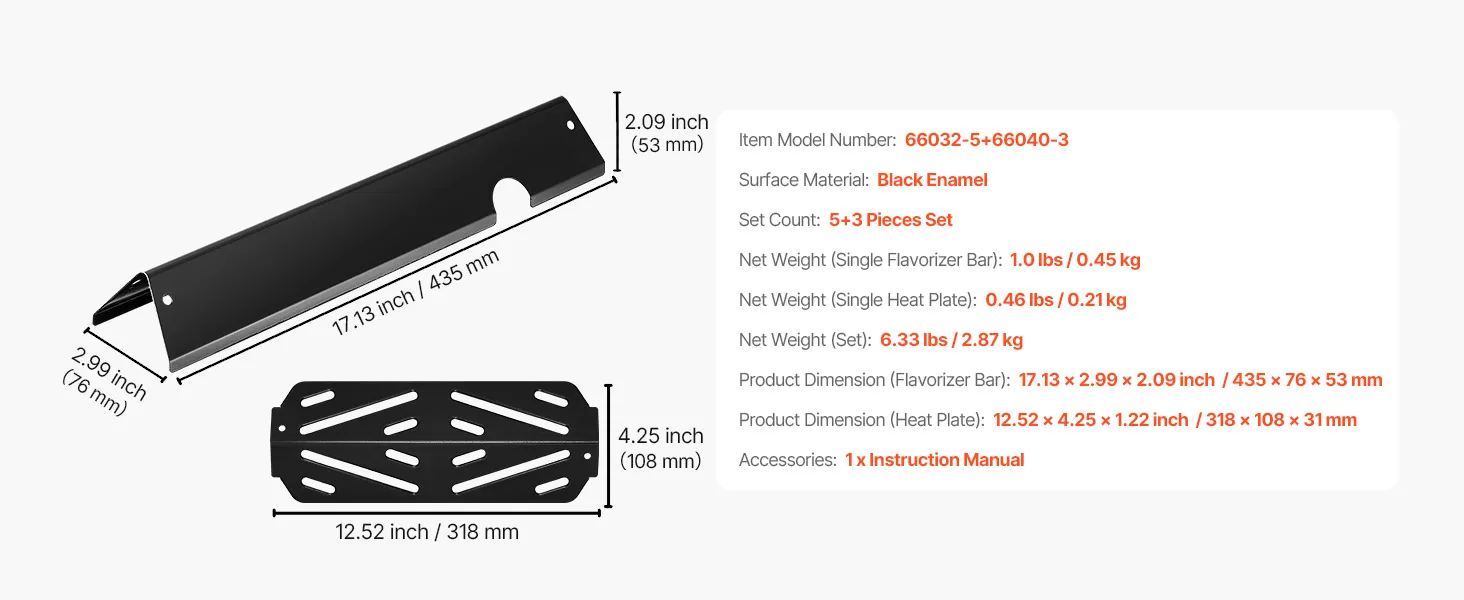 Precise Dimensions: This set includes 5 flavorizer bars and 3 heat plates. Carefully packaged to guard the edges during shipping. Please carefully check your original parts and compare them with our dimensions before purchasing