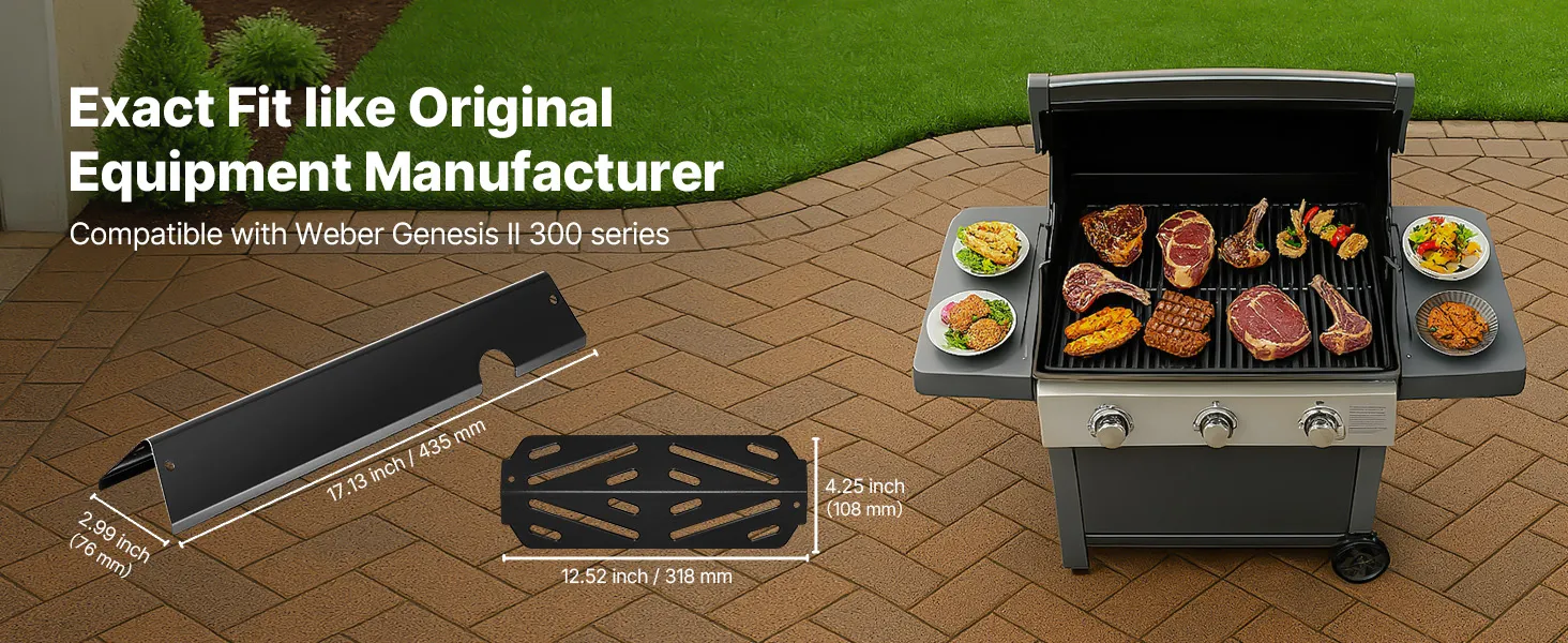 Ideal Match for Weber: Compatible with Weber Genesis II 300 Series grill parts, suitable for Genesis II E-310, S-310, S-335, E-335, E-315, GS4, S-315, S-330, E-330, S-330, SE-310, E-325, S-345, CSS-315, CSE-315, SE-330, CE-330, SE-335, CSS-335, CSE-335; Weber Genesis II E-310 flavorizer bars, Weber Genesis II grill parts GS4, Weber Genesis II S-345 parts, Weber Genesis II E-310 parts, Weber Genesis II E-310 flavorizer bars, Weber Genesis II E-315 flavorizer bars, Weber Genesis II E-315 parts