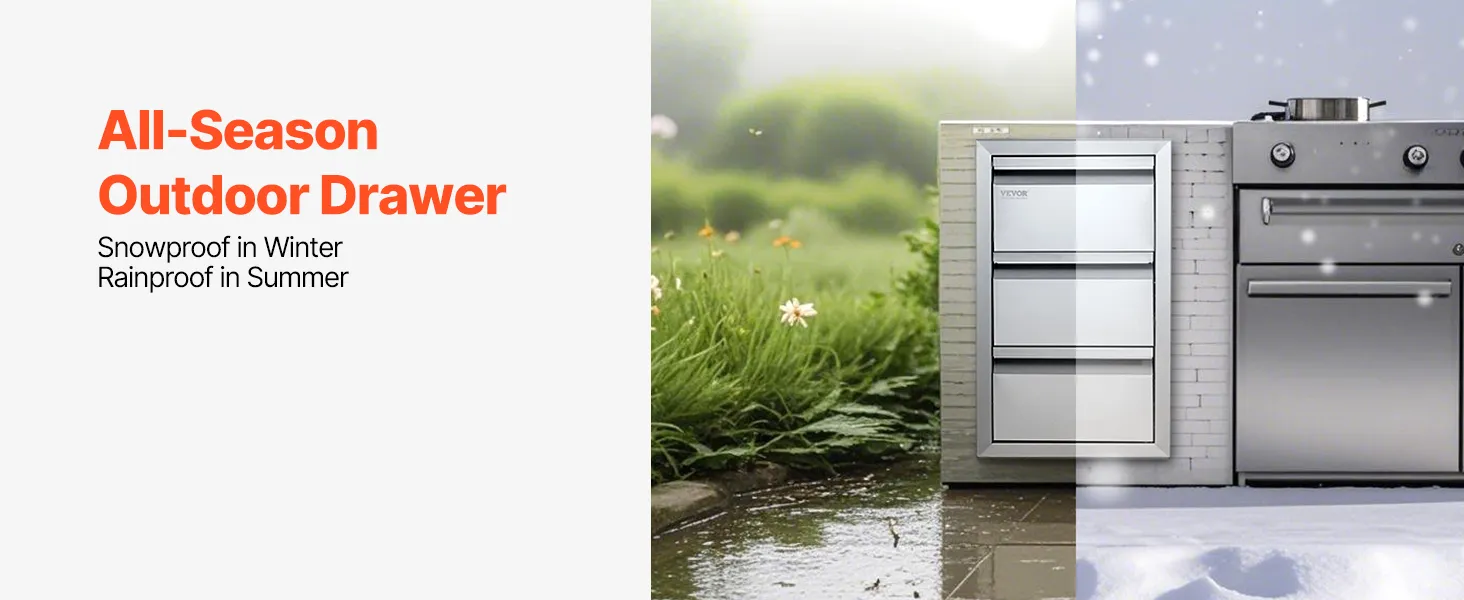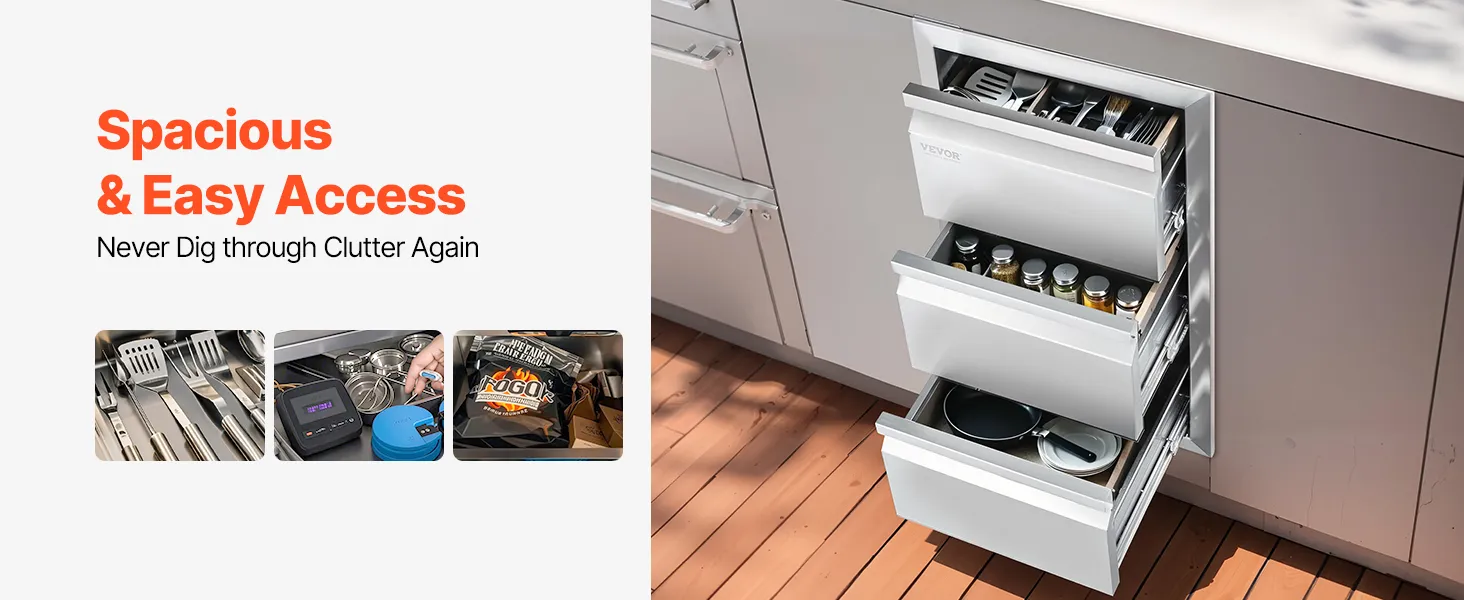 If you get the VEVOR outdoor kitchen drawers, you're getting superior quality at a fantastic value. The design of these units rivals that of high-end brands, yet they are significantly less expensive. Experience the advantages of stainless steel construction at an affordable price. We build our products to withstand heavy use, making them an excellent investment for any outdoor cooking setup.