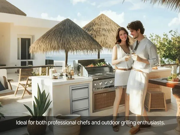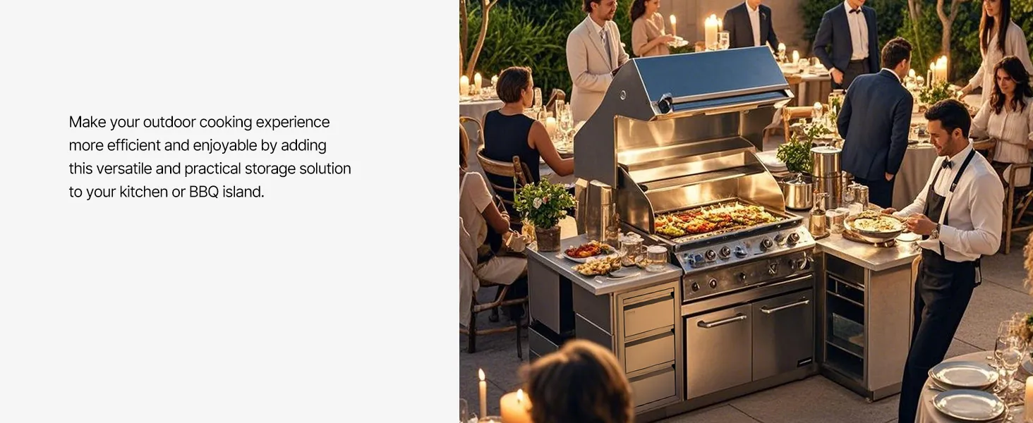 Our outdoor kitchen drawers feature a flush mount BBQ drawer design. This ensures they fit seamlessly with your outdoor decor. Made from high-quality stainless steel, they offer excellent durability and resistance to the elements. Whether you're hosting a BBQ or enjoying an elegant family dinner, these drawers provide an efficient solution for keeping your outdoor kitchen organized.