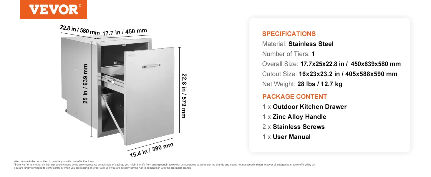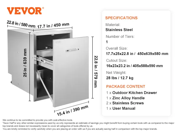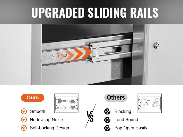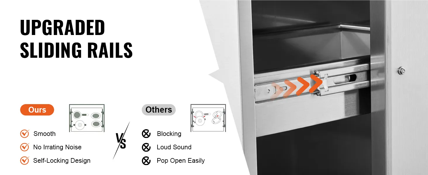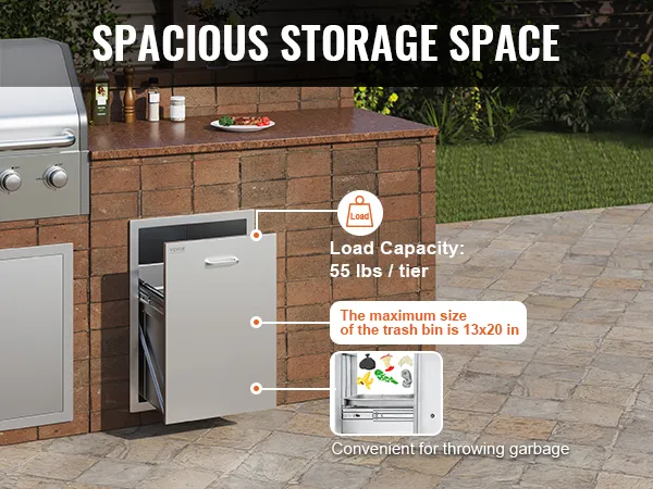 The ease of use continues after installation. The pull-out mechanism works smoothly, allowing for seamless waste disposal. This user-friendly design makes it an easy addition to any outdoor kitchen setup. Setting up this trash pull-out trash drawer is so simple that it is accessible to DIY enthusiasts and professionals alike. Also, the compatibility with standard-sized trash bins adds to its convenience. There are also several common trash container sizes, which simplify the process of finding a suitable bin. With this feature, you can accommodate different commonly used trash containers. So, there's no need to worry about fitting it into your schedule.