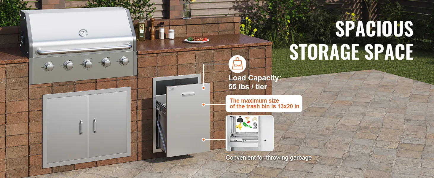 The raised style design includes plenty of storage space, making it highly functional. The spacious room allows for larger trash bins, accommodating more waste and reducing the need for frequent emptying. Easy access is key, as the raised design means you won’t have to bend or reach awkwardly. This ergonomic advantage makes waste disposal easier and more comfortable. You can trust that the elevated trash bin ensures your outdoor kitchen stays organized and clutter-free. Combined with its storage capacity, it makes for an amazingly practical tool for efficient kitchen management.