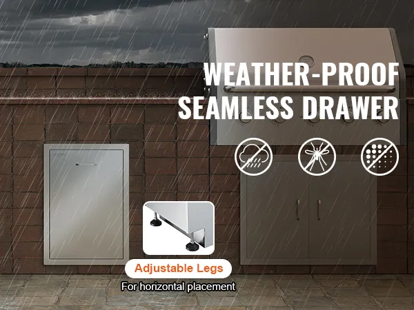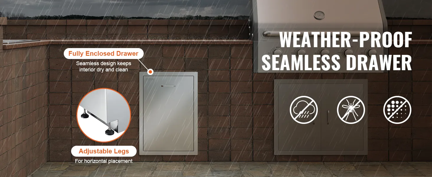 The pull-out trash drawer's modern design seamlessly blends with any outdoor kitchen or BBQ island. Its sleek lines and stainless steel finish provide an upscale look that enhances the overall kitchen design. This stylish appearance means the pull-out trash drawer is not only functional but also contributes to the aesthetic appeal of the space. Whether upgrading an existing setup or building a new outdoor cooking area, the clean and contemporary look fits perfectly. It offers an eloquent addition that goes well with varying design styles and preferences.