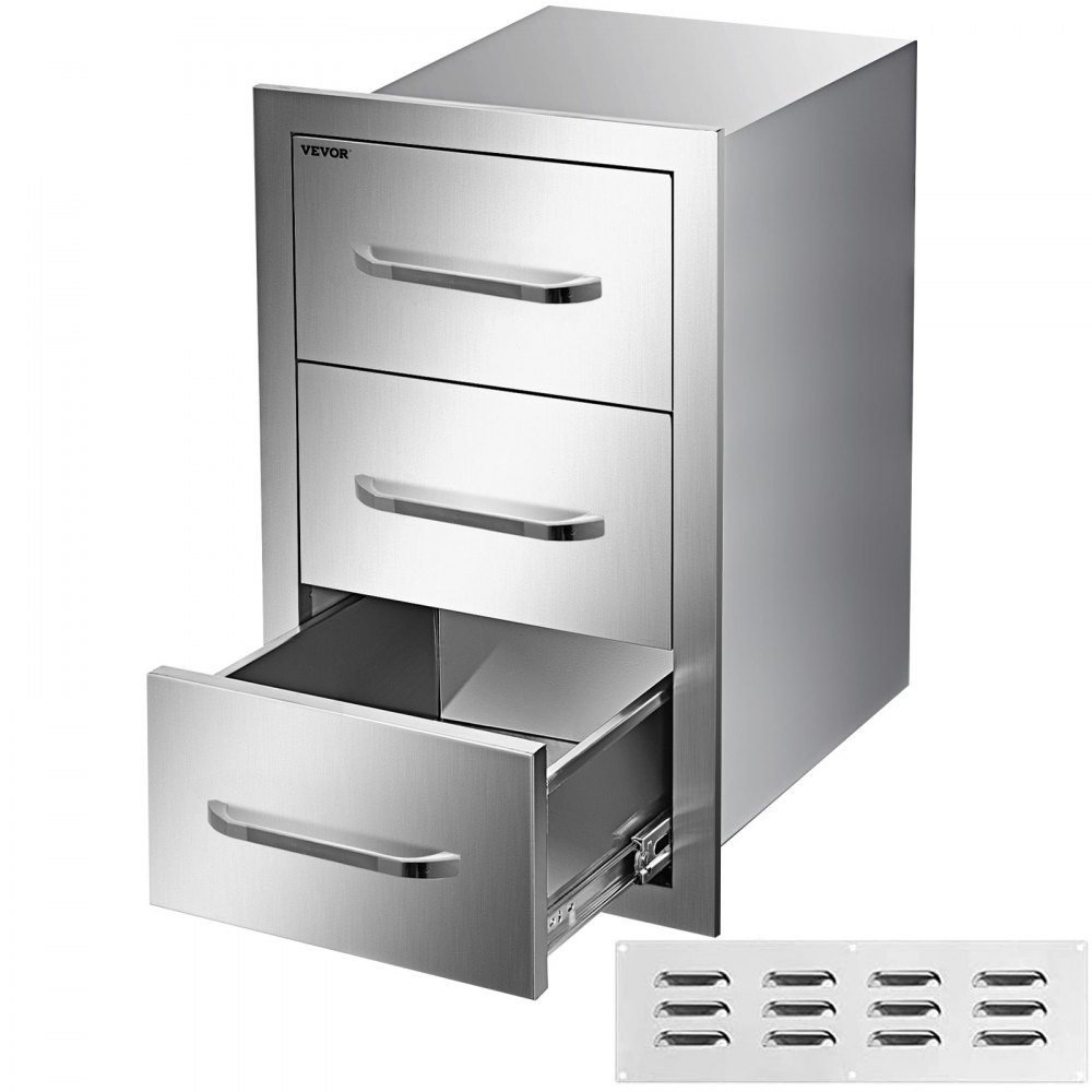 This setup not only keeps your space tidy but also makes it easier to cook meals and entertain guests. The ample storage space is a standout feature for anyone serious about outdoor cooking. With three spacious drawers, you can organize all your BBQ tools, utensils, and other essentials. This makes cooking outdoors more convenient and enjoyable. These drawers slide smoothly, providing easy access to everything inside. They are sturdy and well-built, ensuring they won't falter under the weight of your items.