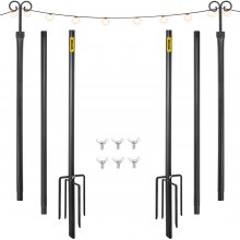 VEVOR String Light Poles, 4 Pack 322 cm, Outdoor Powder Coated Steel Lamp Post with Hooks to Hang Lantern and Flags, Universal Mounting Options to Decorate Garden, Patio, and Deck for Party, Black