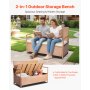 VEVOR Outdoor Storage Bench, 2-Person PE Rattan Storage Bench, 265L Deck Box with Cushion, Supports up to 120 kg, Weatherproof Outdoor Seating & Porch Decor for Patio Garden Balcony Yard