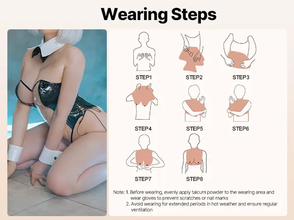 Easy to Wear: Highly stretchable and not easy to tear when wearing, this fake boobs breastplate is easy to put on and take off. Comes with gloves and a powder puff to make wearing more convenient and comfortable.