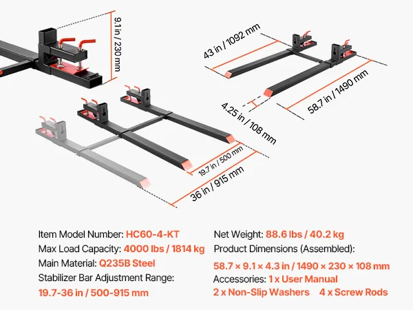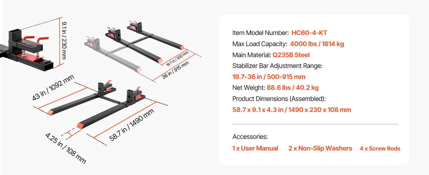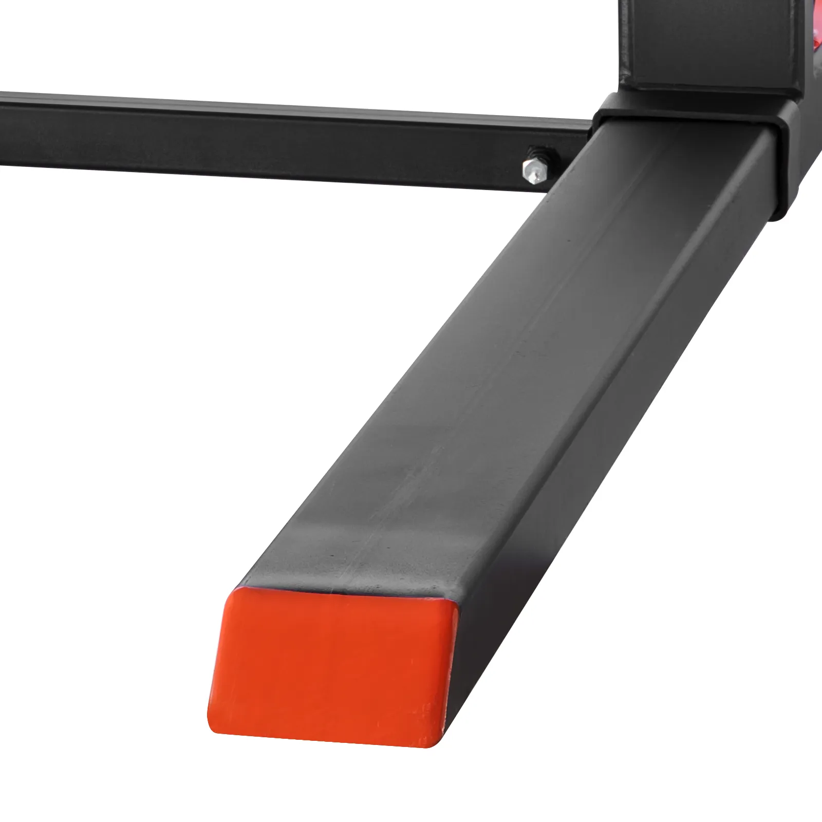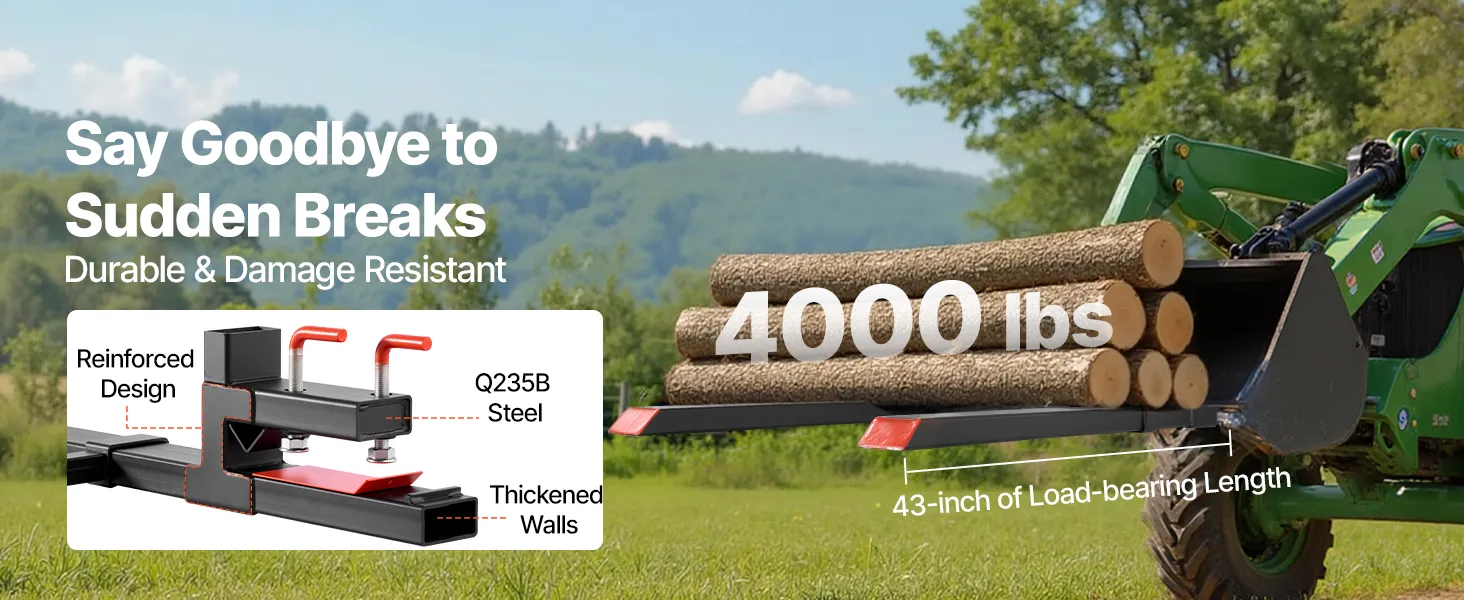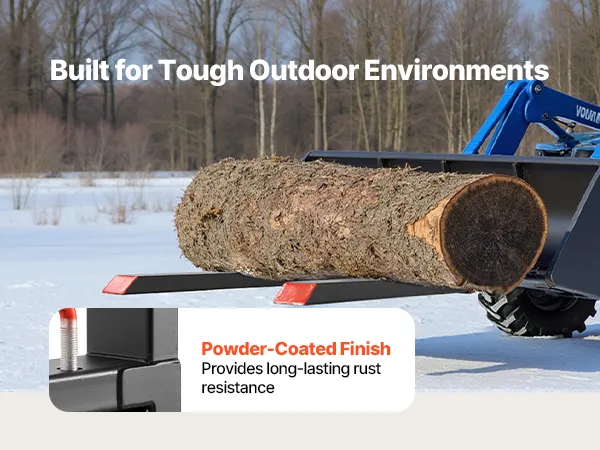Quality Details: Q235B steel and a powder-coated finish of our pallet forks stand up to tough outdoor use. Dual chain holes support extra tie-downs, while bright orange tips boost visibility