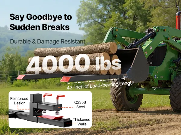 Secure Load Capacity: These 60-inch clamp on pallet forks lift up to 4,000 lbs (1,814 kg). The 3.9 mm thick tube walls and side reinforcement ribs help handle heavy loads without bending