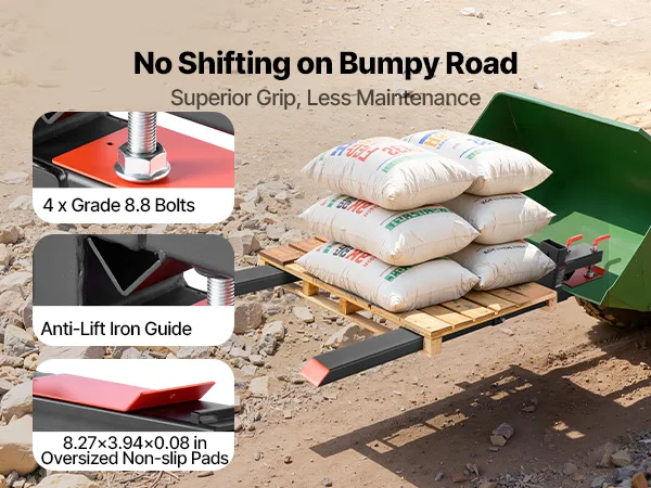 Strong Locking System: Four Grade 8.8 bolts and a pressure pad of the bucket forks deliver serious clamping force. The setup helps stop slipping and shifting during work