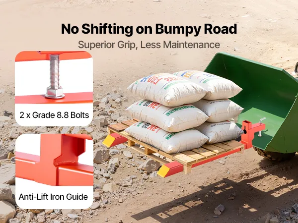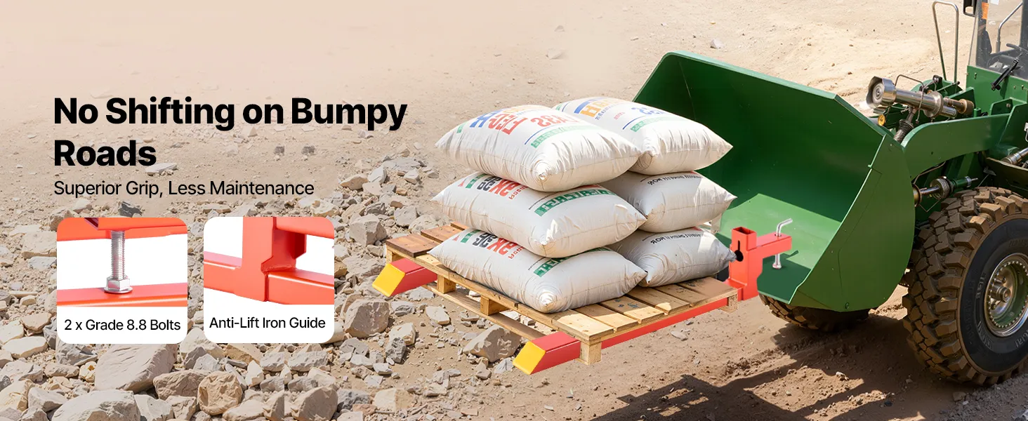 Strong Locking System: Two Grade 8.8 bolts of the bucket forks deliver serious clamping force. The setup helps stop slipping and shifting during work