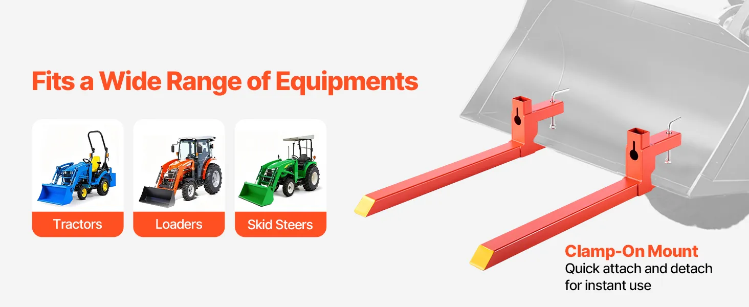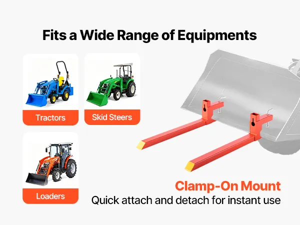 The clamp on pallet forks attach to most tractors, loaders, and skid steers with simple clamps. You skip buying a dedicated forklift, boost handling efficiency, and keep jobs moving securely.