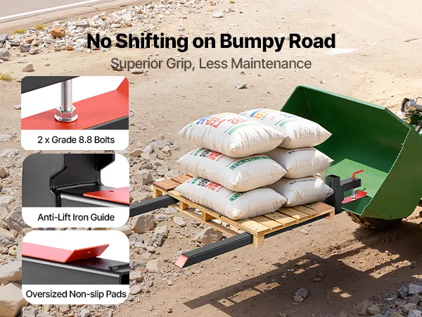 Strong Locking System: Four Grade 8.8 bolts and a pressure pad of the bucket forks deliver serious clamping force. The setup helps stop slipping and shifting during work