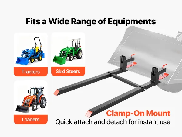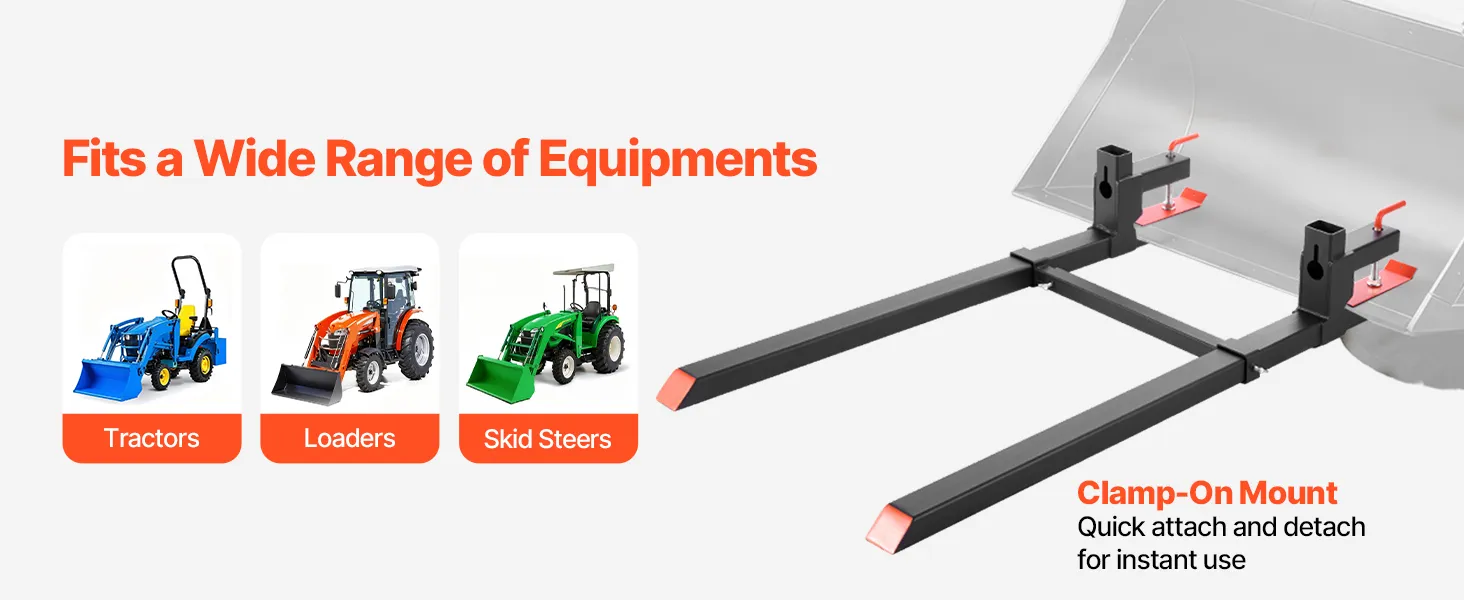 The clamp on pallet forks attach to most tractors, loaders, and skid steers with simple clamps. You skip buying a dedicated forklift, boost handling efficiency, and keep jobs moving securely.