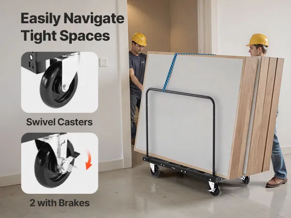 Smooth 360° Movement: Four 5 in PP casters roll smoothly across floors. Two swivel wheels with brakes let you lock the panel truck cart in place, keeping loading and unloading steady