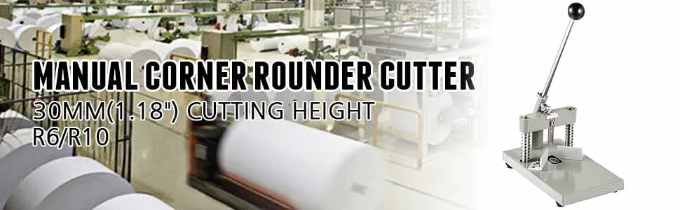 This corner rounder heavy duty machine is designed for cutting corners of business cards, books, documents, certificates, PVC cards for bags and notebooks, etc. Cutting Height: 30mm(1.18"), Fillet Radius: R3, R4, R6, R8, R10(Only Provide R6, R10, others-Please purchasing separately). All-metal material, the corner punch rounder machine is heavy-duty. Premium blades have sharp edges, improving the fast cutting speed.