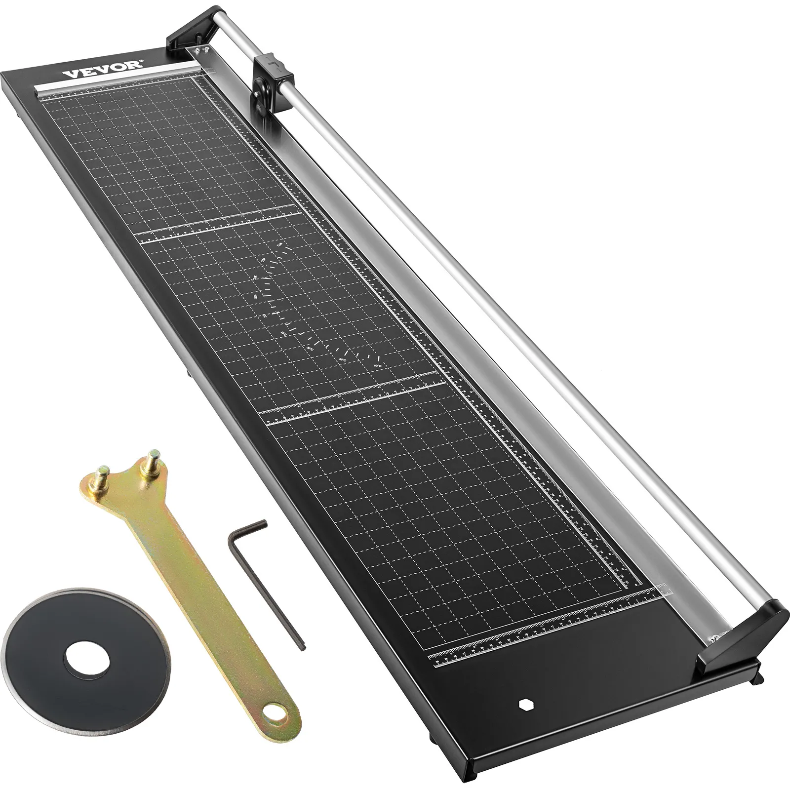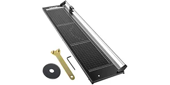 Our fast paper cutter features a self-sharpening rotary blade and lower blade, both made of manganese steel. It can cut in either direction.