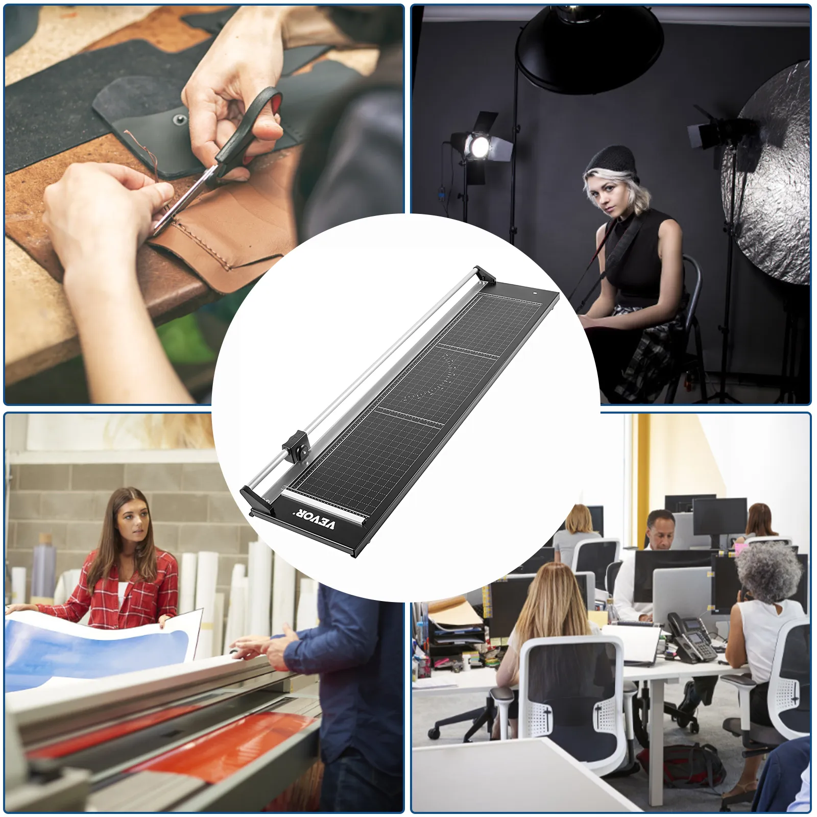 The thick paper cutter is perfect for both commercial and professional use. It is widely applied in photo studios, cultural offices, copying houses, etc.