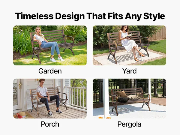 Built for the Outdoors: This outdoor bench features a premium steel frame that withstands sun, rain, and snow without cracking, warping, or corroding. Solid and stable, it's made to last and provides reliable support
