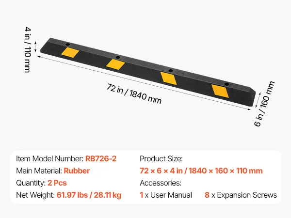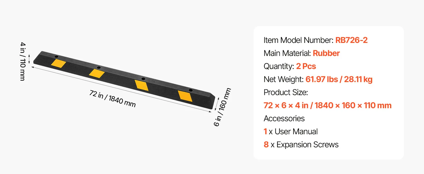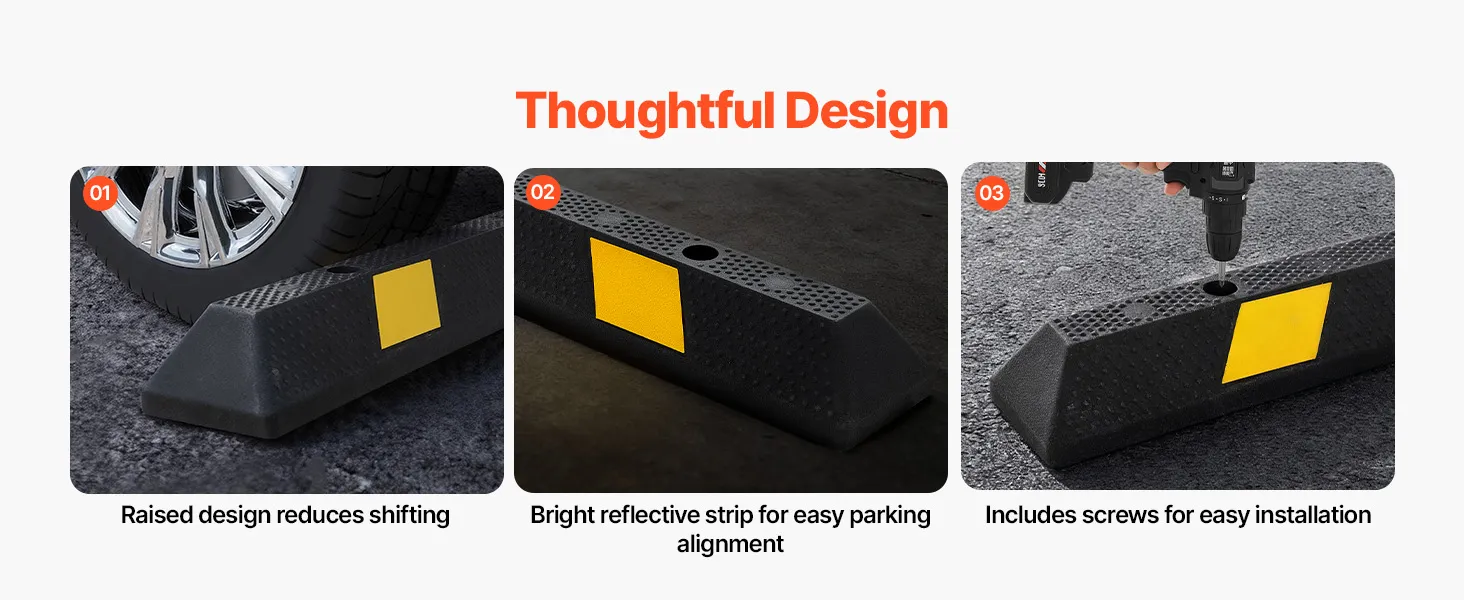 High Hardness Material: Made of wear-resistant rubber, the parking curb provides higher hardness, stronger load capacity, non-slip property, and wear resistance than ordinary materials. It has no deformation after long-term use and is more durable