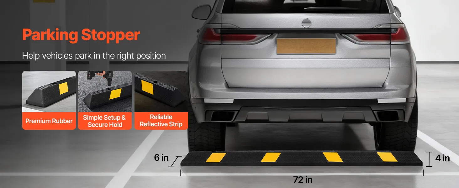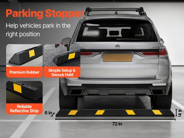 Made of premium rubber material with an adhesive design, our parking stopper is easy to install. Equipped with reflective strips, it improves nighttime parking confidence.