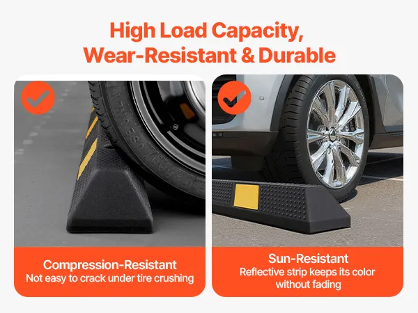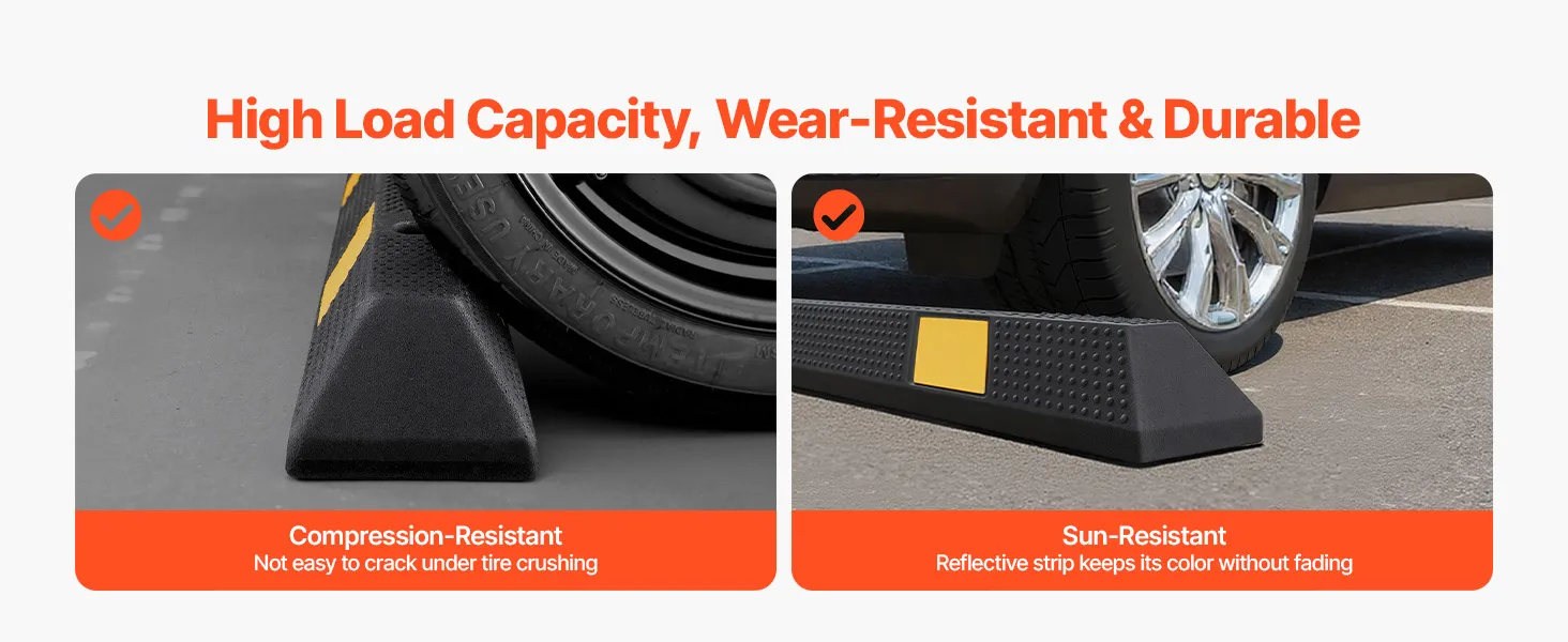 Built with a strong load-bearing capacity, the parking curb can withstand tire crushing without cracking. Sun-resistant design keeps the color of reflective strips bright over time.
